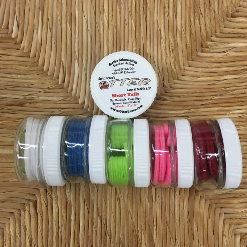 Otter Short Tails are the perfect trailers for bucktails, rigs and jigs. Designed by Captain Bruce, Otter Short Tails are made of a durable synthetic material and they are infused with squid and fish oils with a UV enhancer. They flutter through the water and hungry fish will strike! Otter Short Tails are a great alternative to pork rind. If you are looking for a trailer for the back of your bucktail, jig or rig, Otter Short Tails are a great option!