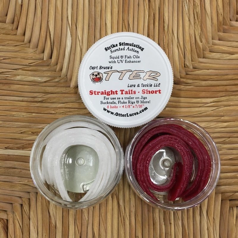 Otter Lures has taken their popular Otter Straight Tails and made them smaller. Now these great trailers are perfect for the back of lighter bucktails, rigs and jigs. Designed by Captain Bruce, Otter Straight Tails – Short are constructed of a durable synthetic material and are infused with squid and fish oils with a UV enhancer. You can catch dozens of fish on one bait before having to change it out. With their straight tail design, they disrupt the water, enticing hungry fish to strike. Otter Straight Tails – Short are a great alternative to 50-S pork rind. You can reuse them and they will not dry out.